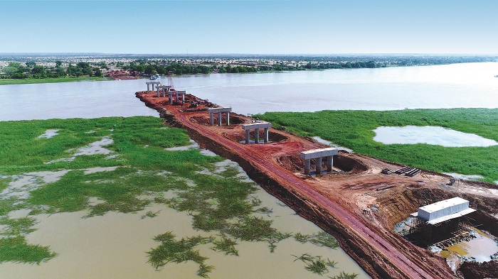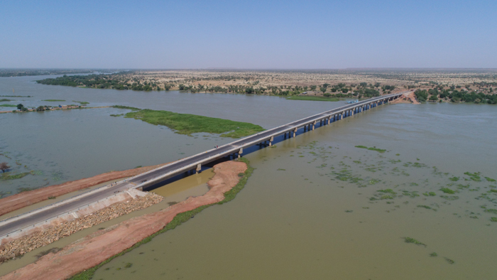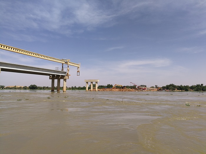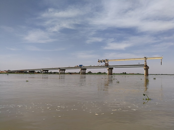 The Farie Bridge across the Niger River, with a total span of 640 m, each single span of 40 m, a total of 16 spans, and 64 pieces of prestressed T-beams.