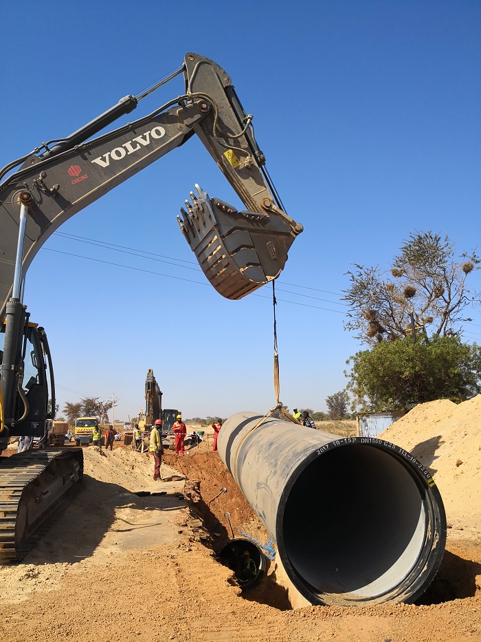 The KMS3 Water Supply Project - LOT6 in Senegal The project is to supply and lay 55 km DN1 500 mm ductile iron pipeline from downstream of Mékhé to Thiès. Construction SiteConstruction SiteInstallationPipe Transportation