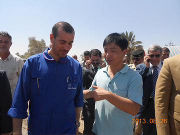 Foundation Laying Ceremony of 1st Stage of Al-Hay Sewage Treatment Plant in Iraq SOURCE: CGCINT IRAQ The above-mentioned ceremony was held in Al-Hay City on August 26, 2013. Officials of the Iraq government attended the ceremony, including the Minister of Municipalities & Public Works, Director of General Directorate of Sewerage, Governor of Wassite Governorate, and Director of Wassite Governorate Sewerage Bureau etc. Mr. KongBo, our company’s project manager, reported to the Minister about the project’s overall situation and construction preparation. The minister showed great expectation for our company and this project, and he hoped we can complete the project on schedule with fine quality. Then, he earthed up the prayer into the foundation stone. The Minister cut the ribbon for the project foundation stone laying Mr. Kongbo, Project Manager, reported to the Minister about the project’s overall situation