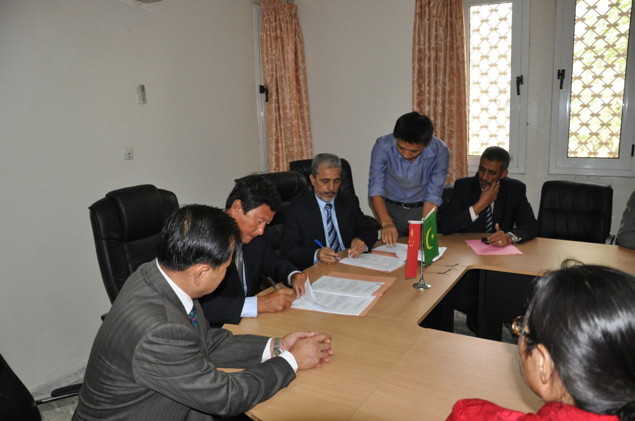 On August 3, 2011, a ceremony was held in the economic affairs and development ministry of Mauritania for the China-aided medical college project of Nouakchott University. The signing ceremony was attended by Xu Jinlong, political counselor of Chinese embassy to Mauritania, Yang Peipei, commercial counselor of Chinese embassy to Mauritania, Yesilaimu. Ould. Hamada, secretary-general of the economic affairs and development ministry of Mauritania, Mohammad.Mahamud. Ould. Sharif. Mohammad, director of the education and training program department of the economic affairs and development ministry, other Mauritania officials, and Zhu Guoyi, representative of China Geo-Engineering Corporation International Ltd. (CGC).