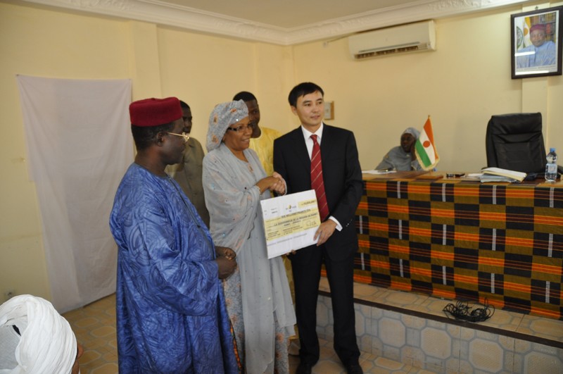 Donation Ceremony of CGC Niger for the Niger People SOURCE: CGCINT NIGER On August 28th, 2012, CGC Niger donated 15, 000,000 CFA Franc West (about 180,000 RMB) to the flooding area in Niger, making it the first Chinese company offering donation to this country, which showed our great care to the Niger people. We sincerely wish that the Niger people can overcome the disaster and rebuild their homes very soon.Since August, large area in Niger was suffering floods due to a series of heavy rains, 400, 000 people’s lives were seriously affected. Lots of hospitals, schools, roads and other infrastructures were destroyed, farmlands were also drowned, and the loss was inestimable. Chief executive of Niamey Great Region (the middle one) is shaking hands with Mr. Ye’erken, Manager of CGC Niger, to express her appreciation.