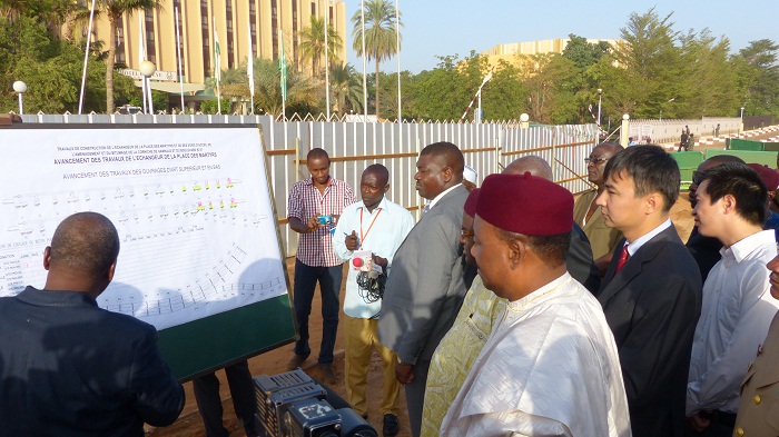 President of Niger Republic Inspected Martyrs's Square Flyover SOURCE: CGCINT NIGERAt 8:00 a.m. October 21st, 2014, President of Niger Republic and his delegation accompanied by the head of CGCINT Niger regional company inspected the construction site of martyrs' square flyover which is undertaken by our company. The delegation included Minister of mining and industry development, Minister of equipment, and chief exclusive of Niger great region, etc.President Yusuf asked detailed questions about the progress of the project. He affirmed the construction situation of the project, and highly praised the contribution of Chinese staff to Niger's nation-building. The president said that Martyrs' Square flyover was the second flyover in Niger Republic, and it is a people's livelihood project which was particularly concerned by the government of Niger Republic. He hoped that our company can further accelerate the construction progress to ensure the early completion for the benefit of the people of Niger Republic.