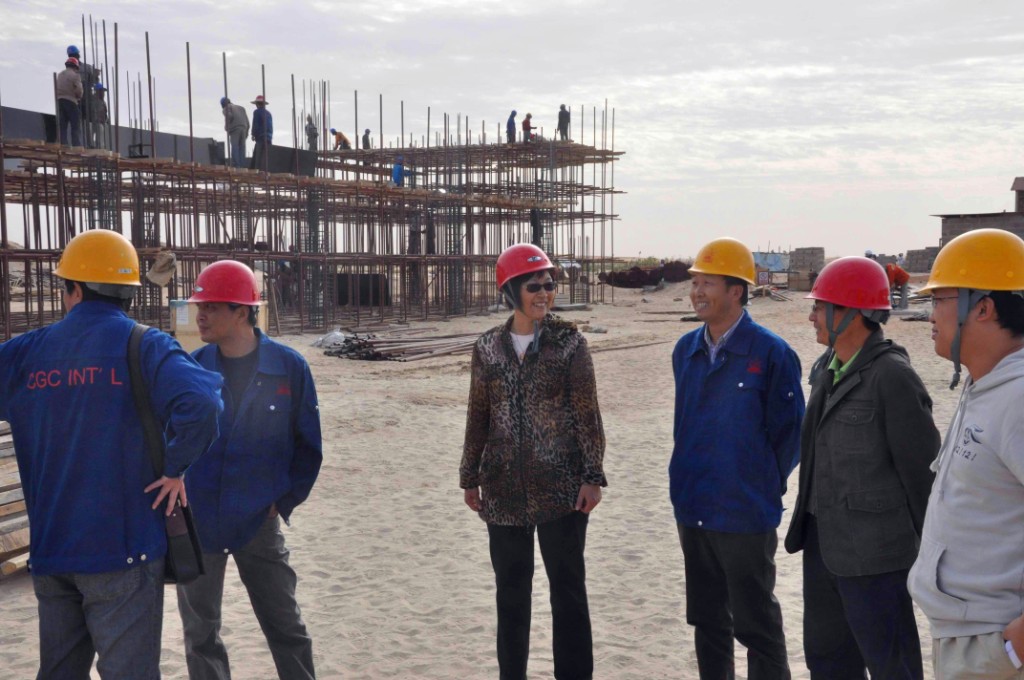Accompagnée par Monsieur Lin jianyong, directeur général de CGC International  en Mauritanie, Mme YANG Peipei, Conseillère Economique et Commerciale près l'Ambassade de chine en Mauritanie a inspecté dans la matinée du 10 janvier 2012, le projet en construction de la faculté de médicine du futur campus universitaire de Nouakchott en Mauritanie exécuté par notre entreprise.