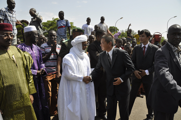 尼日尔第一座立交桥竣工开通仪式 SOURCE: CGCINT NIGER 2013年9月17日,在尼亚美举行了由我公司承建的尼日尔第一座立交桥——Mali Béro立交桥工程竣工开通仪式。出席仪式的尼方代表有:尼日尔总统、总理、国民议会第一副议长、国会议员、尼亚美市长和各区区长等,中方代表有中国驻尼日尔大使石虎先生、我公司代表叶尔肯、苏立等。 开通仪式上,总统先生代表尼政府和人民衷心感谢中国长期以来为尼提供的真诚帮助, 并高度赞扬了我公司对尼日尔国家建设做出的突出贡献,此工程大大改变了尼亚美的城市面貌和交通状况。随后尼日尔总统和中国驻尼日尔大使石虎先生共同为立交桥通车剪彩。